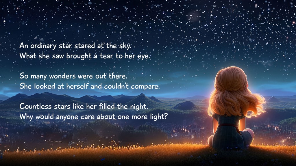 In this touching rhyming book about family and friendship, an ordinary star looks at all the wondrous things in the night sky. Why would anyone pay any attention to her when there are countless stars like her out there? But as she takes a harder look, she discovers how she, together with her family and friends, are more extraordinary than all the others.