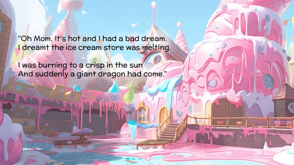 Ivy’s imagination is in trouble! Her popsicle dragon flies her to a wintery rainbow candy wonderland, but there’s only one problem. It was just a dream! Mom tells Ivy she can go back any time by closing her eyes, but Ivy wants to go there with her eyes open! How can Mom help Ivy get her imagination back?
