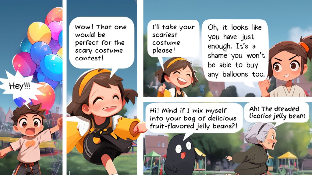The stakes are high in the war between Blane, a boy who sells balloons, and Carmen, a girl who sells costumes. The park isn’t big enough for both of them so they make a bet and the loser must leave the park forever! The age-old war of balloons versus costumes finally comes to an end. Who will be victorious and who will doomed to obscurity for the rest of eternity?