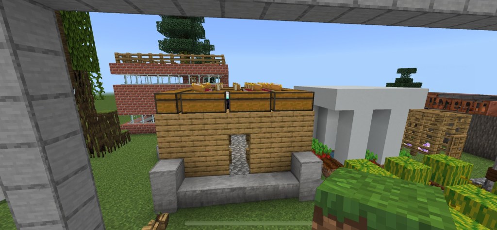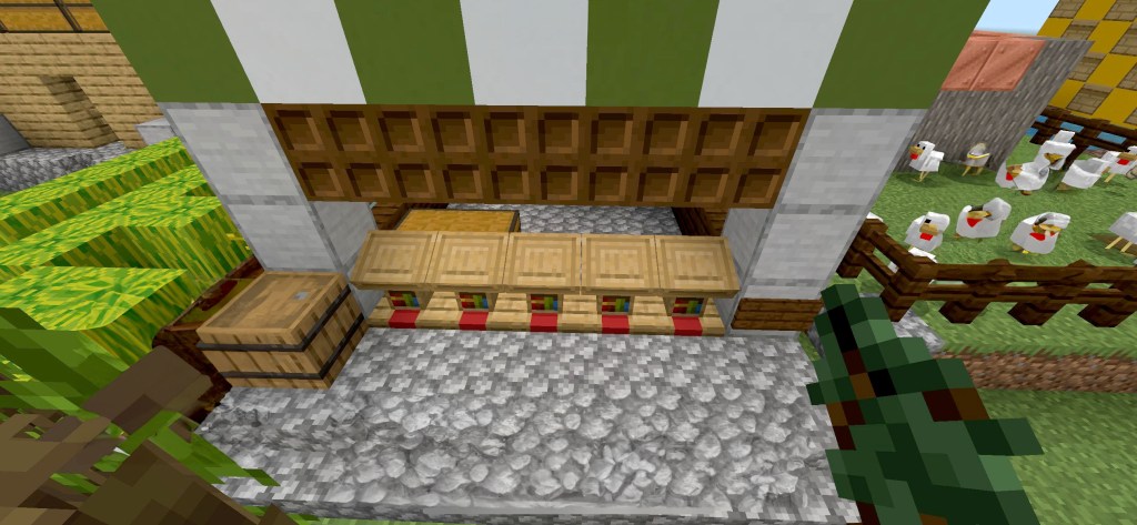 This is my store. The chests are full of fruit and vegetables. No eggs but it has a secret base full of chests and eggs.